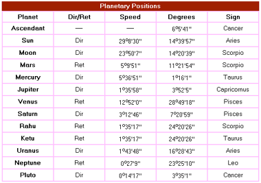 situated in his debilitated sign Scorpio in the fifth house with Mars and Rahu. The Moon