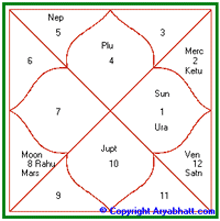auspiciousness. Debilitated Jupiter and Rahu are aspecting the birth ascendant. Lord of