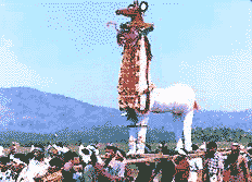 The colorful procession is accompanied by tradition percussion instruments. The